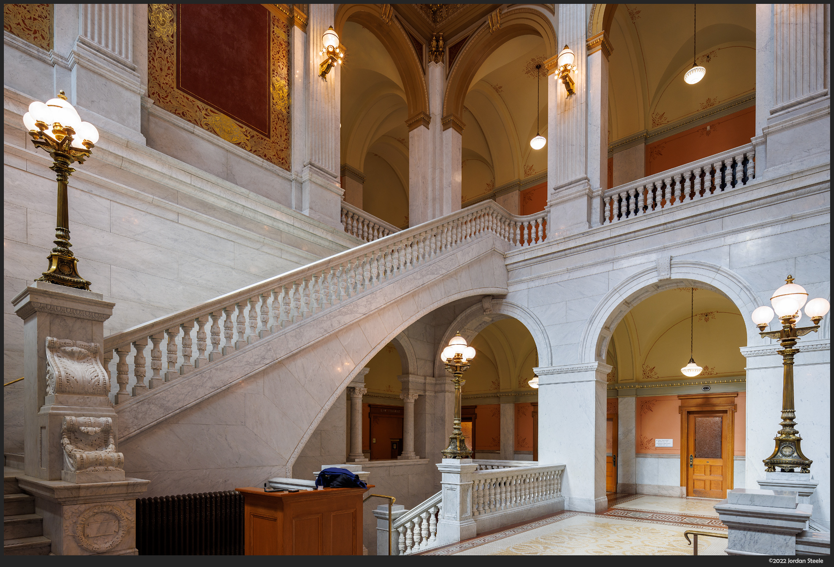 Ohio Statehouse Hallway – Canon EOS R5 with Laowa 20mm f/4 Zero-D Shift @ 2s, ISO 100